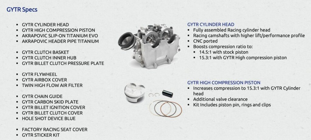 Klik hier voor een overzicht van alle beschikbare GYTR onderdelen voor de YZ250F