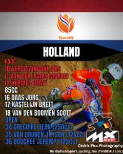 Eigenlijk is het event dat dit weekeinde tegen de Franse grens wordt georganiseerd niet samen te vatten. He hele weekeinde door worden er -tig wedstrijden gereden. Maar de nadruk ligt toch op de landenwedstrijden in de 65 cc, 85cc en de Open klasse.