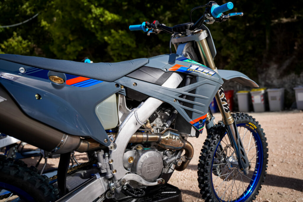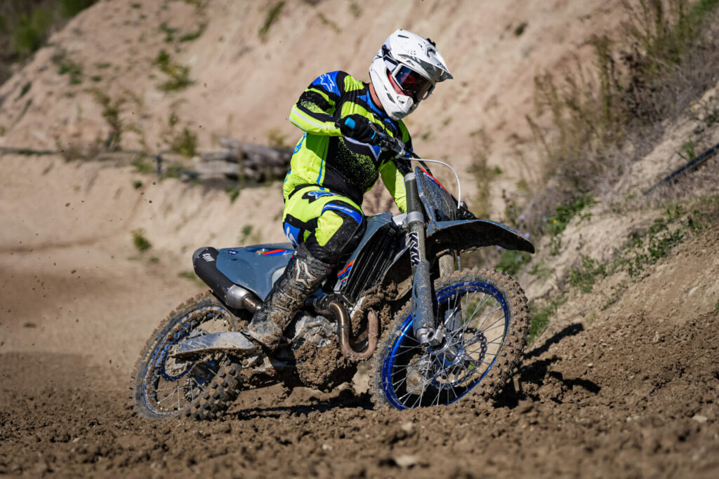 Het is altijd even wennen als je van een 2-takt overstapt op een 4-takt, maar het duurde niet lang voordat ik een goed gevoel had met deze 250cc 4-takt. De elektrische starter is er al lang bij TM, dus wat dat betreft is er geen verschil met de gevestigde waarden in het MX2-segment.