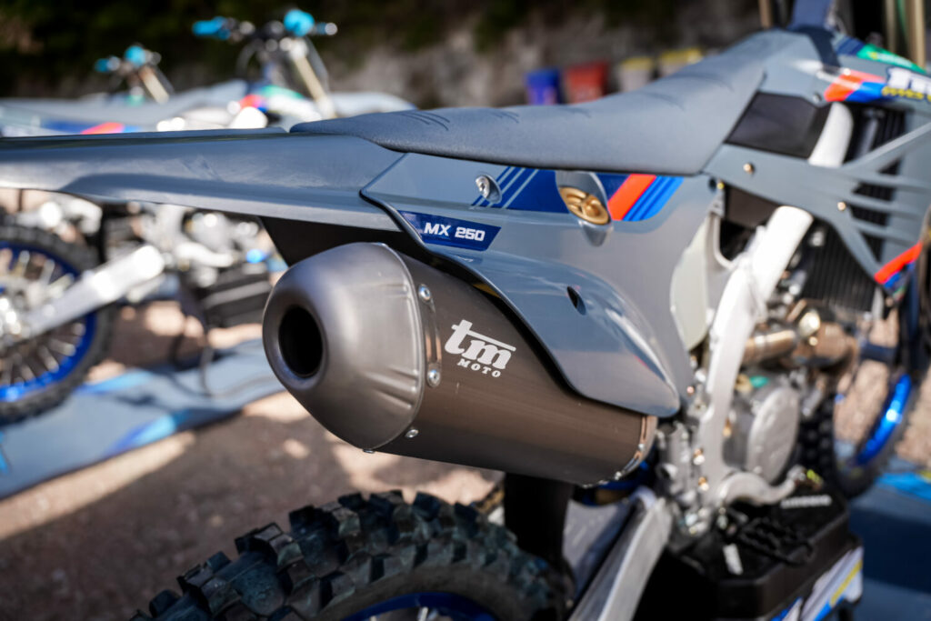Voor de volledigheid vermelden we nog de TM MX 250 ES Fi Corse. Die is herkenbaar aan de gele in plaats van rode accenten in de striping en biedt o.a. bronzen triple clamps, bronzen carterdeksels, een Renthal Fatbar-stuur, meer CNC-onderdelen, een speciale koppeling met Belleville-veer, wielassen met quick-release-hendels, een geavanceerd achtertandwiel en aangepaste remschijven.