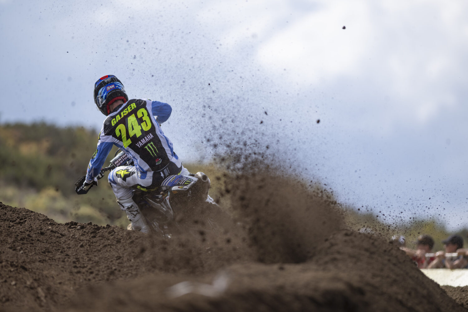 Tom Vialle, gisteren nog winnaar van de kwalificatieheat, stoof al snel voorbij Adamo naar de tweede stek. Tim Gajser, dit jaar op een Yamaha, was als negende en had dus werk op de plank liggen op een circuit dat tijden het weekend flink was losgetrokken en bewaterd. De Fransman Tom Vialle, na twee jaar in de VS weer te zien in het WK, reed resoluut naar The Bullet toe en verschalkte de snelle Nederlander. Voor velen was het misschien een verrassing maar Vialle reed nu op P1.