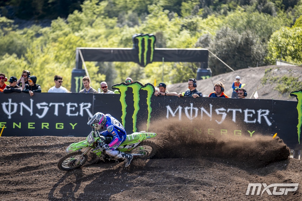 Tien punten, dat is de inhaalbeweging die Jake Cannon maakt tegenover teammaat Francisco Garcia na de EMX250 ronde in Trentino. De Australiër eindigde in de 2e manche tweede na de Deen Nicolai Skovbjerg.