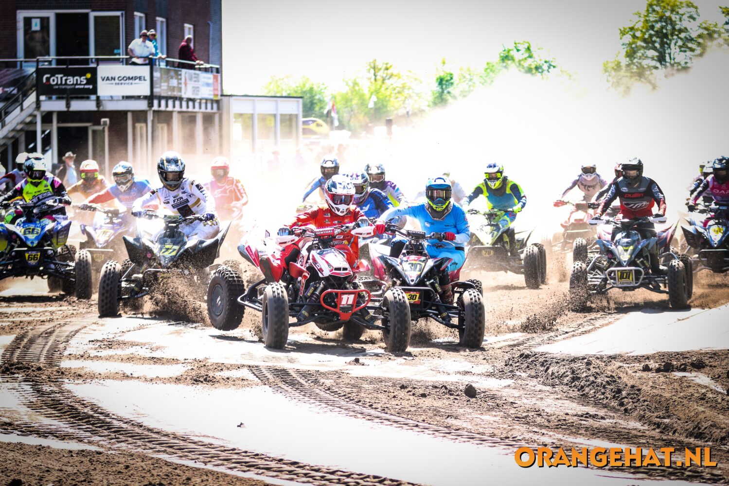 Als het hek valt voor de eerste heat Het is van Lith die de holeshot lijkt te pakken maar Van Grinsven zet bij het ingaan van de eerste bocht brutaal zijn quad voor Van Lith. Al vechtend op de leiding duikt men zo het bos in en Van Grinsven komt als leider het startveld weer op na ronde één, gevolgd door Van Lith.